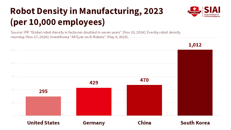 American companies are not starting from scratch. Robot orders in North America stabilized and began to recover through late 2024 and into 2025 after a temporary decline, with food and consumer goods leading the way. However, the key benchmark isn't just an increase in orders; it is robot density and overall equipment effectiveness (OEE) in U.S. plants compared to international competitors. With China at 470 robots per 10,000 workers and Korea exceeding 1,000, U.S. robot density is still a disadvantage in many sectors, beyond just automotive and electronics. Until U.S. robot density and software-defined automation significantly improve unit labor costs, the discussion about large-scale reshoring will continue to outpace measurable outcomes.