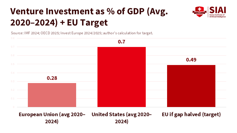 To assess the "quality effect," we can look at risk capital. Over the last decade, EU venture investment has averaged approximately 0.2–0.3% of GDP, while the US has averaged around 0.7%. The tightening in 2022–2023 affected both sides of the Atlantic; however, Europe's lower starting point and thinner late-stage pools meant that many promising firms stalled or relocated. The lesson is not that Europe lacks ideas; rather, it is that skilled allocators struggle to scale within a fragmented system. The policy response is finally coming together: the Commission's Savings and Investment Union strategy places capital market deepening at the heart of competitiveness. Seven member states have launched a pan-European savings label to encourage household investments in European equities, and Brussels is promoting a Scale-up Europe Fund, expected to exceed €10 billion, to bridge late-stage funding gaps. Each of these measures addresses different challenges, and together they begin to prioritize quality over price, emphasizing the crucial role of skilled allocators in scaling Europe's ideas.